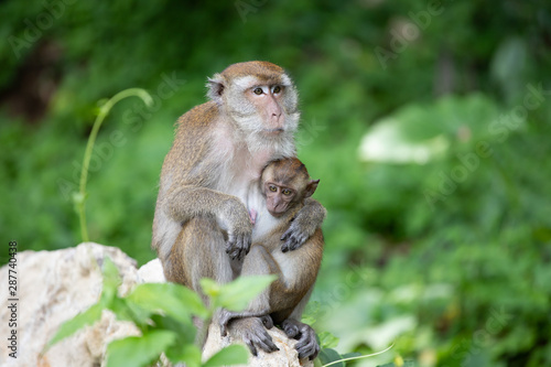 © erika8213, Obraz premium Macaque monkeys in the forest.