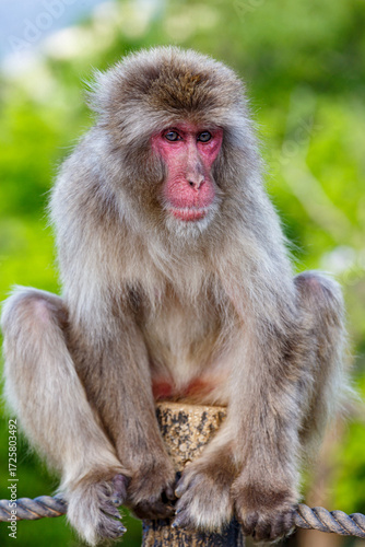© Marco Olivetti, Naklejka premium Macaque resting on a post in Japan