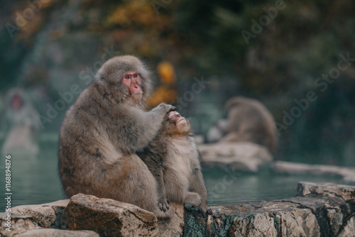 Fototapeta premium Macaques at Jigokudani Snow Monkey Park in Nagano, Japan