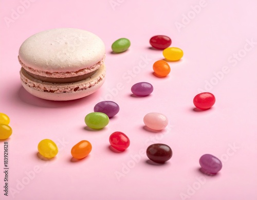 Obraz premium Macaron stack with jellybeans on pink backdrop