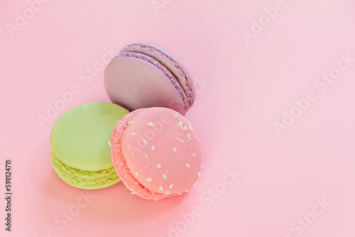 © lumikk555, Obraz premium Macarons cakes or macaroon on pink background