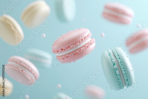 © Goncharenko, Obraz premium Macarons Flying Through Air