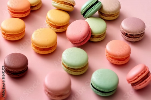 Obraz premium Macarons on pink background.Generative AI.