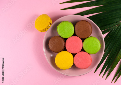 © Alisa, Naklejka premium .macaroons in a plate on a pink background