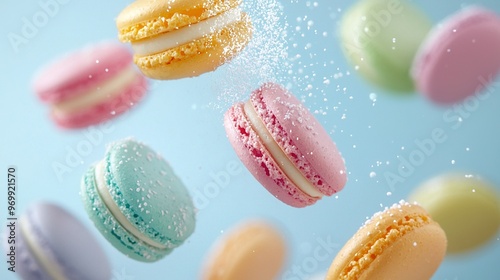 Obraz premium Macaroons in flight with sprinkled sugar