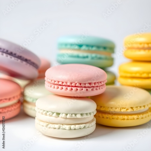© 희승 이, Obraz premium Macaroons in various colors. White background