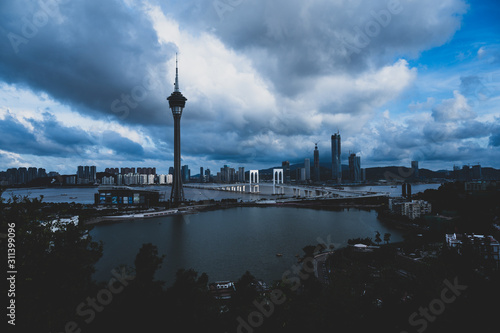 Naklejka premium Macau,China in December 2019, Macau Tower and Cityscape