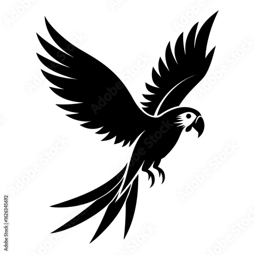 Obraz premium Macaw flying vector clean black silhouette design white background