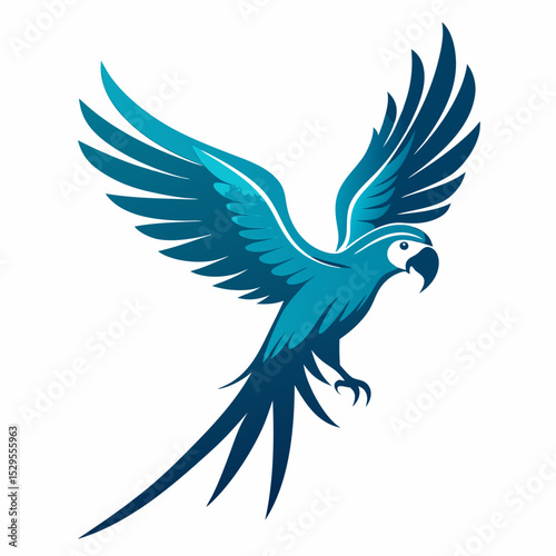 Obraz premium Macaw parrot silhouette flying on a white background a tropical bird in simple vector art style