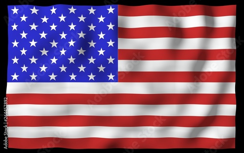 © Plastic man, Fototapeta premium Macha flagą Stanów Zjednoczonych Ameryki na ciemnym tle. Gwiazdy i paski. Symbol stanu USA. Ilustracja 3D