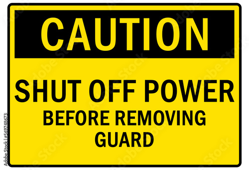 Fototapeta premium machine guarding sign and labels shut off power before removing guard