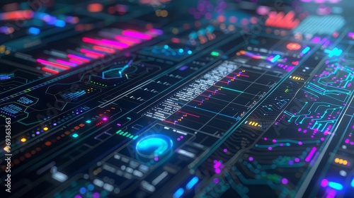 Fototapeta premium Machine learning model training on a large dataset with performance metrics displayed on a screen with copy space