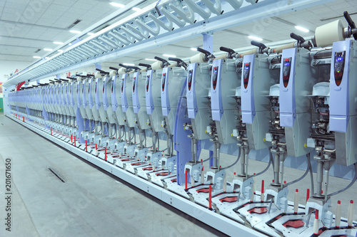 © qiujusong, Fototapeta premium Machinery and equipment in a spinning production company