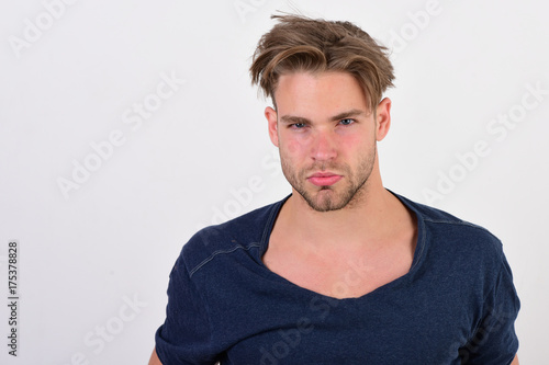 © be free, Obraz premium Macho with confident face and bristle. Masculinity and confidence