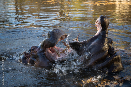© fotofrank, Fototapeta premium Machtspiele der Flusspferde