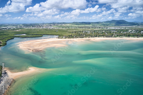 © Orion Media Group, Fototapeta premium Mackay region and Whitsundays aerial drone image with blue water and rivers over sand banks