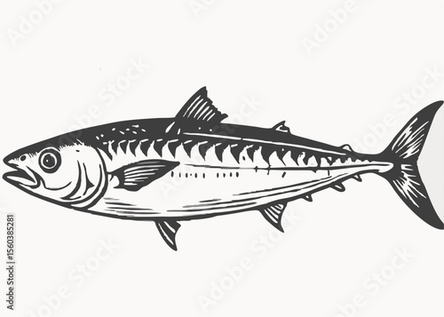 © MdFiroza, Fototapeta premium mackerel fish line vintage style Minimalist concept vector illustration