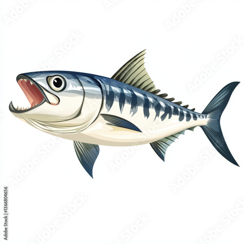 © ENDRY, Obraz premium Mackerel Fish with Open Mouth Swimming Aggressively in the Ocean