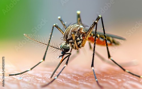 © Ketanoff, Fototapeta premium Macro Aedes aegypti Mosquito. Close up a Mosquito sucking human blood