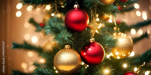 © Margarita, Obraz premium Macro background of a Christmas tree covered with beautiful frost. Hyperrealistic, highly detailed. AI generated