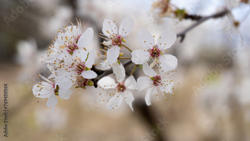 © Алексей Бартенев, Obraz premium Macro blooming folower on the tree