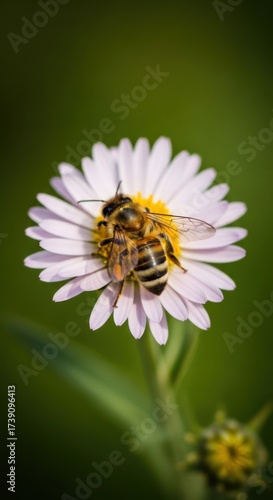 © pulpen, Obraz premium Macro capturing the diligent honeybee gathering nectar on a daisy flower