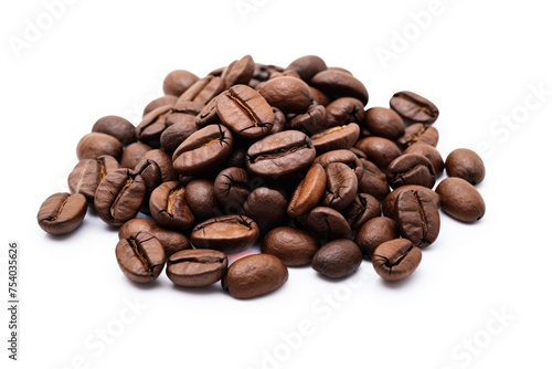 © AstraNova, Naklejka premium macro close-up Aromatic stacked roasted coffee beans isolated on white background