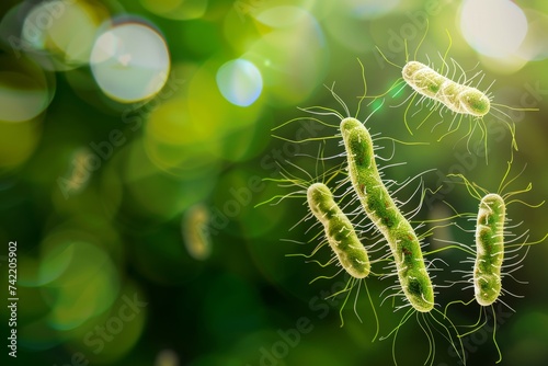 © Lukasz Czajkowski, Naklejka premium Macro Close-up Group of Germs and Bacteria in Water Disease Medical concept background. Generative AI