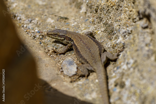 © Gustavo Palacios, Obraz premium Macro close-up lizard on the ground