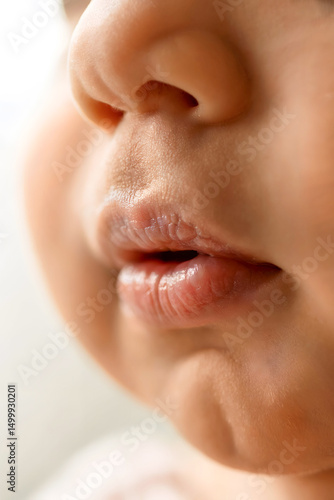 Obraz premium Macro Close-Up of Baby’s Lips and Nose in Warm Natural Light Highlighting...