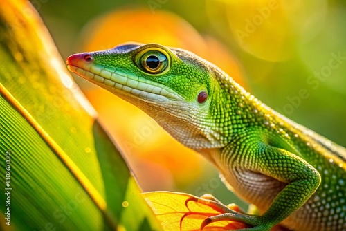© Sirinporn, Naklejka premium Macro Close-up of Brown Anole Lizard Basking in Florida Sunshine