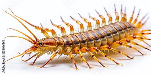 © Man888, Obraz premium Macro Close-up of House Centipede Isolated on White Background