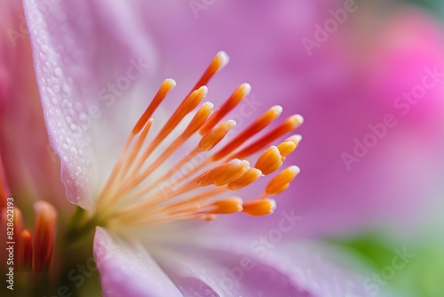 © ins.dsign, Naklejka premium Macro Close-up of Pink Flower Stamen, Detailed Petal Structure, Vibrant Colors, Botanical Photography, High Resolution, Nature Image, Floral Beauty