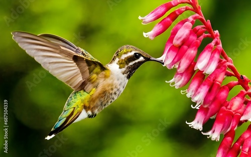 Fototapeta premium Macro closeup humming bird flora nature ai generative