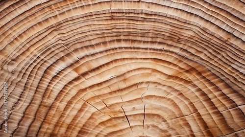 Fototapeta premium Macro closeup of natural wooden tree trunk cross section texture with annual...