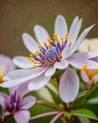Fototapeta premium Macro flor blanca morada azul y anaranjada