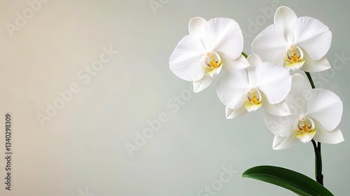 © Tin, Obraz premium Macro flowers landscapes concept. Elegant white orchids bloom gracefully against a soft backdrop.