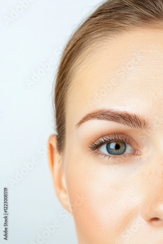 Fototapeta premium Macro focus on forehead lines and subtle skin texture