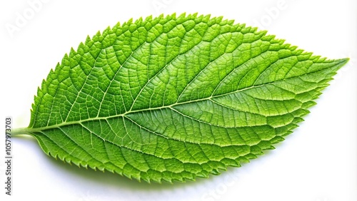 Fototapeta premium Macro green leaf isolated on white background
