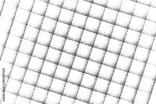 Fototapeta premium Macro halftone grid of soft diagonal square tiles, printed black dots and...