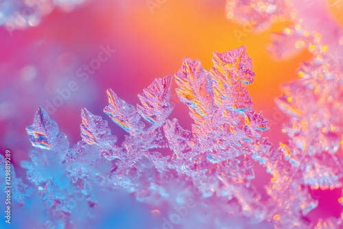 Naklejka premium Macro Ice Crystal: A detailed close-up shot of intricate ice crystals, showcasing delicate patterns and textures with a vibrant color gradient.
