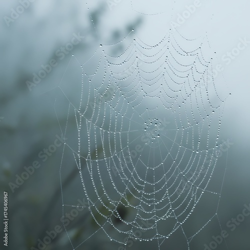 Naklejka premium Macro Illustration of Dew-Covered Spiderweb