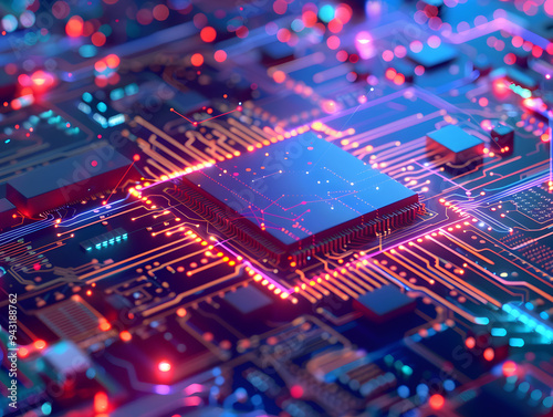 © Dmytro, Obraz premium Macro image of a computer processor. Neural network AI generated art