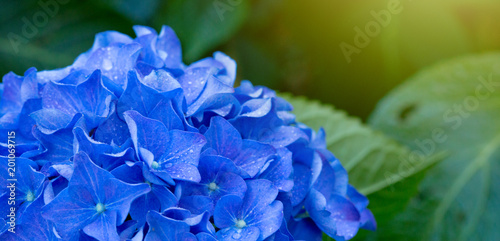 © Swetlana Wall, Obraz premium Macro image of Blue Hydrangea flower.