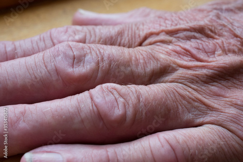 Fototapeta premium Macro image of wrinkles on an old mans hand