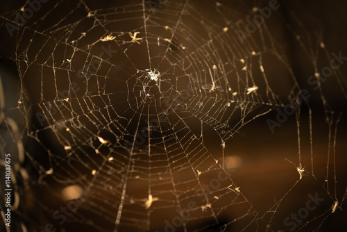 © MR, Naklejka premium macro large spider web close-up horizontal