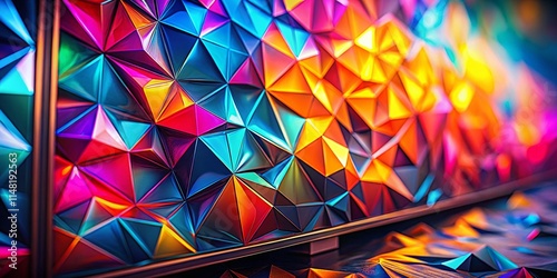 © prapatsorn, Obraz premium Macro Low Poly Monitor Screen, Geometric Pixel Art, Closeup Digital Display, Abstract Technology Background, Detailed Polygon Texture