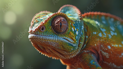 © Wonder Fix, Fototapeta premium Macro Magic: Chameleons Blending into Nature with Stunning Color Changes