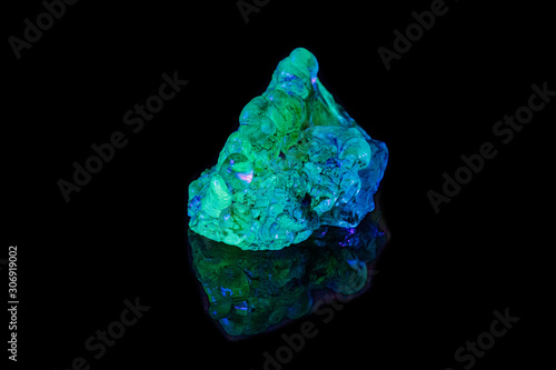 © Minakryn Ruslan , Fototapeta premium macro mineral stone opal under ultraviolet light on a black background