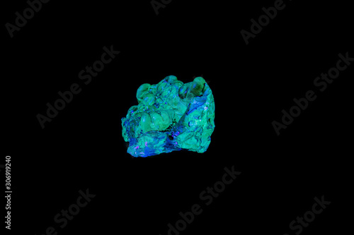 © Minakryn Ruslan , Fototapeta premium macro mineral stone opal under ultraviolet light on a black background